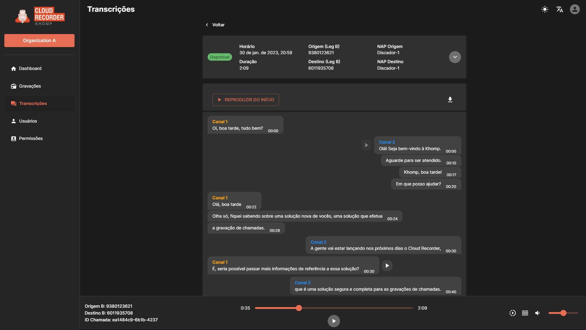 Cloud Recorder es un módulo integrado de la suite Manager One que ofrece una solución completa y segura para la grabación de llamadas. Con Cloud Recorder, sus grabaciones se mantienen cifradas en la nube durante todo el ciclo, cumpliendo con los estándares de protección de datos LGPD y GDPR.